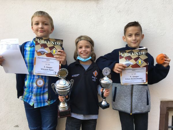 Die U10 Kinder trafen sich bei uns in der Schachburg. Hier spürte man die Corona-Pause. Die U8 Meisterschaft fiel mangels Teilnehmern sogar aus. In der U10 waren immerhin 8 gemeldet. Es wurde ein Rundenturnier jeder gegen jeden mit 20 Minuten je Spieler und Partie gespielt. Alle Kinder hatten Spaß, auch wenn nicht jeder immer gewinnen konnte. Emil Weise strahlte am Ende am meisten. 7 Siege aus 7 Runden, das war nicht zu toppen. Platz 3 und 4 gingen ebenso nach Ersingen. Vincent Kijan erziehlte mit 5P / Platz 3 und Linus Eichenhofer mit 4,5P / Platz 4.